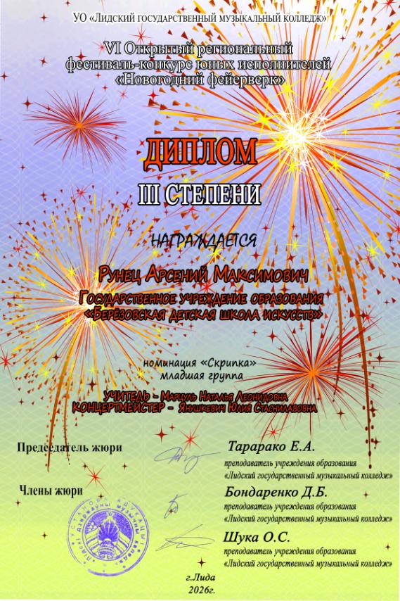 Состоялся VI Открытый региональный фестиваль-конкурс юных исполнителей «Новогодний фейерверк» УО «Лидский государственный музыкальный колледж» г.Лида