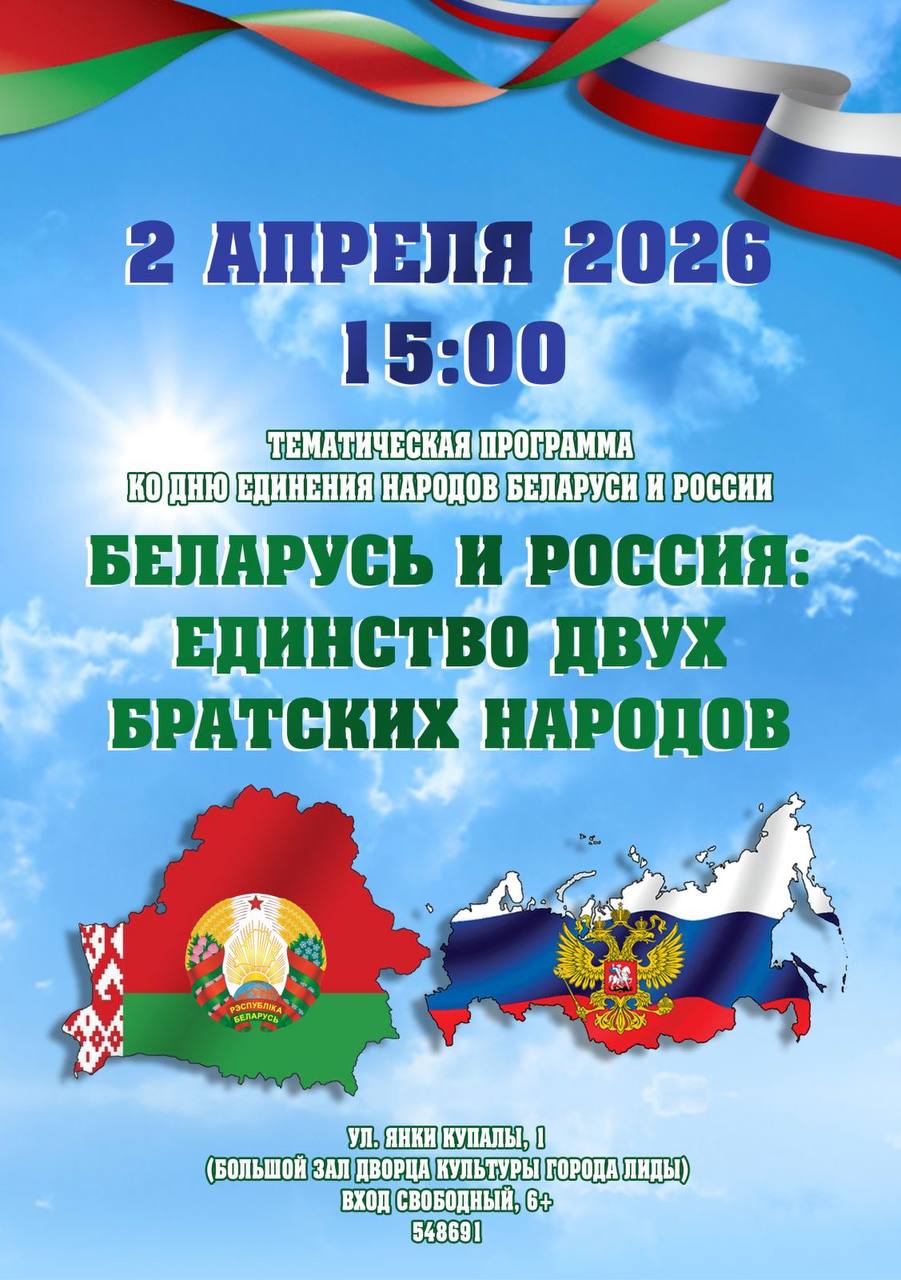 Приглашаем вас на торжественную тематическую программу, посвященную Дню единения народов Беларуси и России!